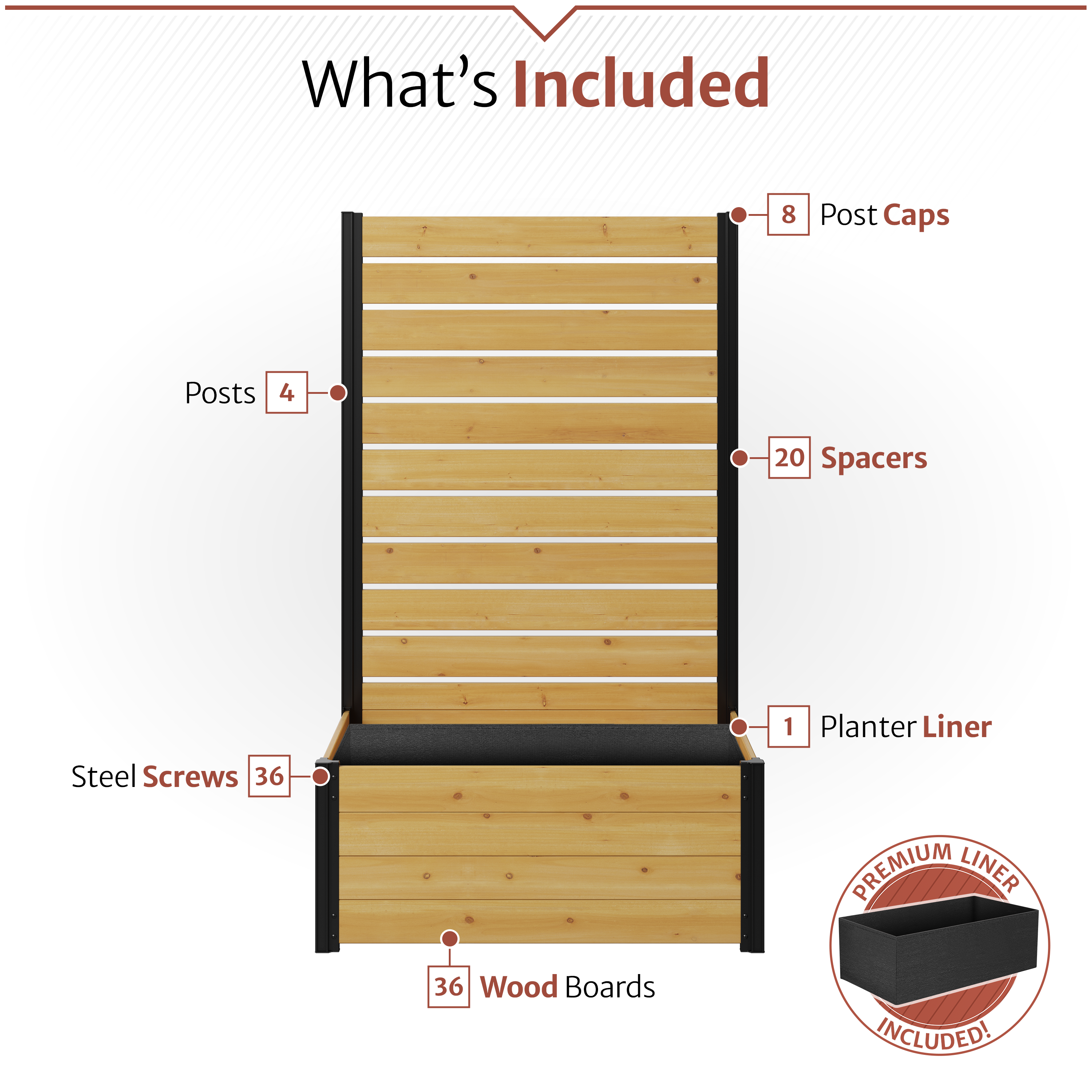 6ft H Concord Freestanding Wood Privacy Screen w/ Planter Box (1 Unit)